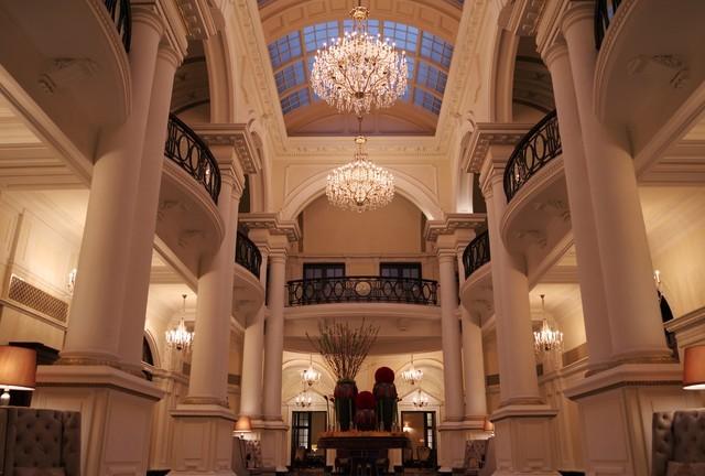 和平飯店不僅外觀宏偉,內部裝飾更是精美絕倫。大堂地面鋪設著乳白色的義大利大理石,牆壁上鑲嵌著金色的玻璃,古銅鏤花吊燈從頂端垂下,每一處細節都透露出奢華與典雅。