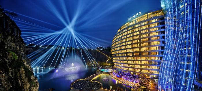 上海佘山世茂洲際酒店(又名世茂深坑洲際酒店),坐落於上海市松江區佘山國家旅遊度假區的天馬山深坑內,是一家海拔負88米、由世茂集團投資建設的自然生態酒店。這家酒店不僅創造了全球人工海拔最低五星級酒店的世界紀錄,還因其獨特的建築設計和創新理念,被美國國家地理譽為“世界建築奇蹟”。