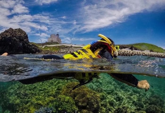 臺灣的澎湖列島,有個知名的旅遊景點叫七美島。說起七美島,很多人的印象是雙心石滬、小臺灣、大獅龍埕等陸上美景,卻很少有人能好好領略澎湖的水下世界。其實七美島的美是立體的,如果不去潛水,絕對是白來。在七美島的月鯉灣,有專門的浮潛游覽。只要花上1個半小時,就能實現一次水下珊瑚礁之旅。