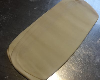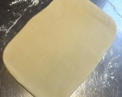 13. 用擀麵杖擀成15x30厘米的長方形麵皮