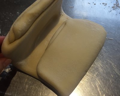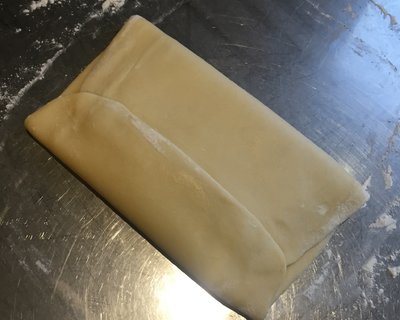 19. 再用疊被子的方法將麵皮兩頭向中間折形成四層