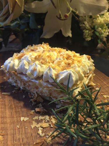 28. 再蓋上另一塊酥皮,上面按自己喜好裱上奶油
