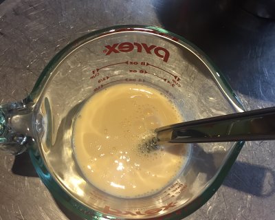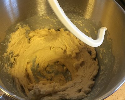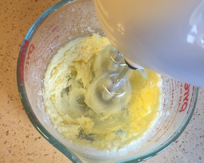 25. 將室溫軟化的黃油和糖粉混合,用打蛋器打至順滑彭松的狀態,加入煉乳攪打均勻