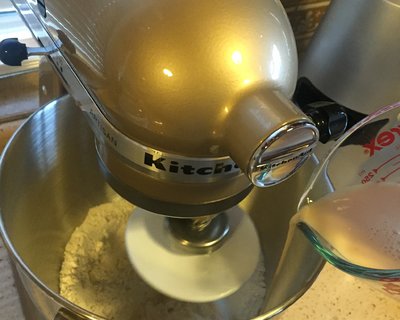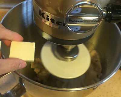 4. 麵粉抱團後加入黃油,並將廚師機的速度提至4檔