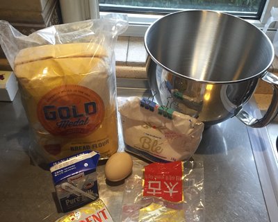 1. 將麵粉,糖,鹽全部放入揉麵桶混合均勻