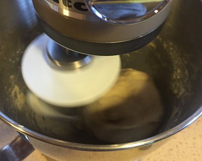 7. 重新啟動廚師機至4檔,將麵糰揉至擴充套件階段,驢媽的廚師機揉了25分鐘