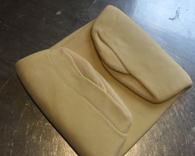 12. 麵皮兩頭摺疊過來將黃油片包好