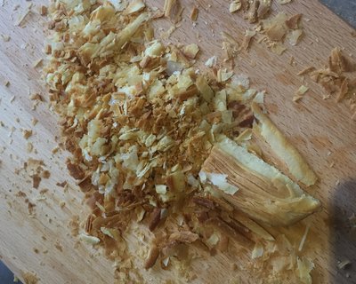 29. 將酥皮的邊角料切碎撒到蛋糕上面作裝飾,喜歡水果的朋友們也可以加入些水果撒上糖粉。