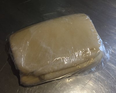 14. 將長方形兩頭向中間摺疊,形成四折就像被子的疊法,包上保鮮膜放冰箱冷藏鬆弛15分鐘
