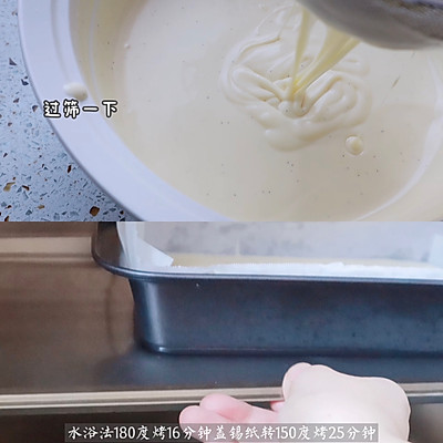 最後過篩幾遍乳酪糊烤箱180度16分鐘蓋錫紙轉150度烤25分鐘,烤好後室溫晾涼冰箱冷藏4小時以上