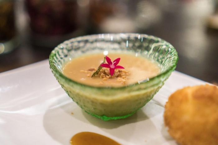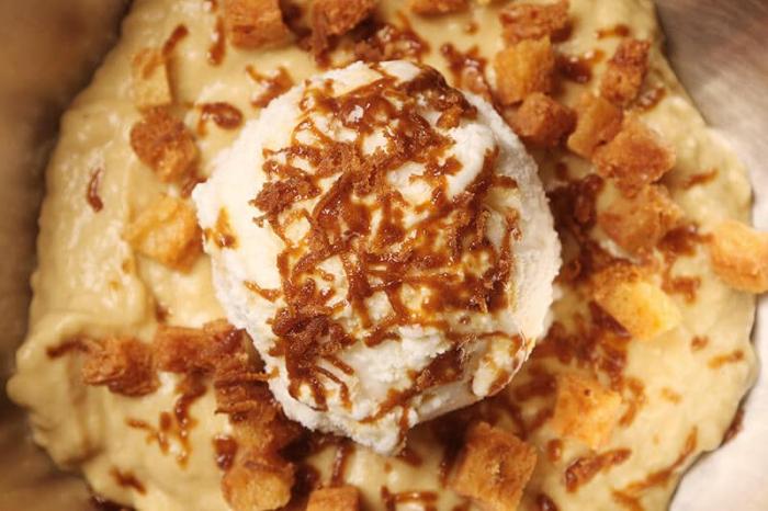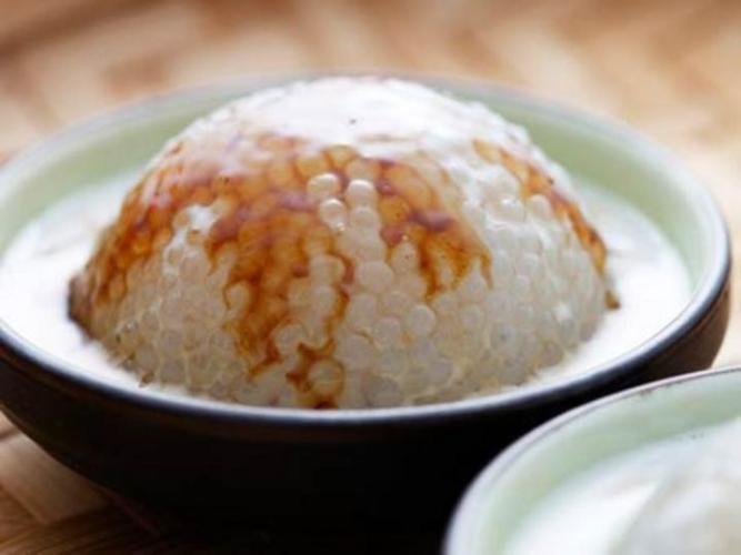 先把焦糖棕櫚糖和西米混合做成球形,然後加上椰奶,並在上面新增椰糖作為裝飾,其中西米起到增稠劑的作用,讓布丁具有濃稠的稠度。