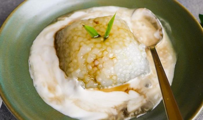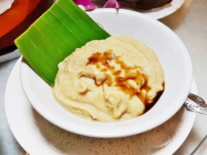 黑糯米粥是用黑糯米、棕櫚糖、椰奶和班蘭葉做成的,它帶有一股堅果味。