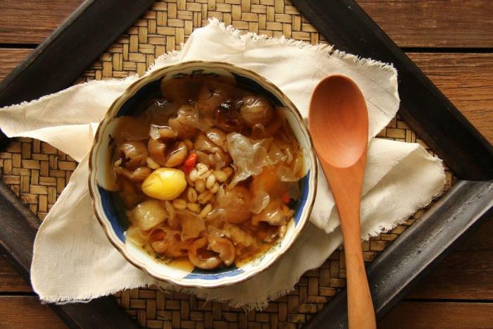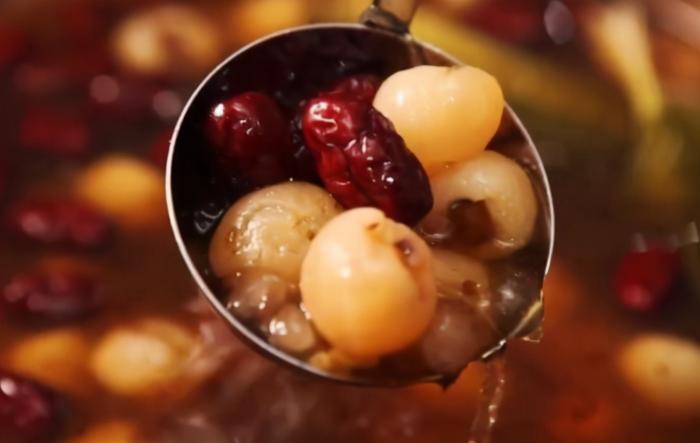 清湯裡包含紅棗、龍眼、大麥、蓮子、西米和銀耳等成分,你可以根據自己的喜好選擇冷熱吃法。