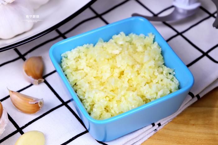 7、蒜蓉打好後,我們裝入小碗中備用。